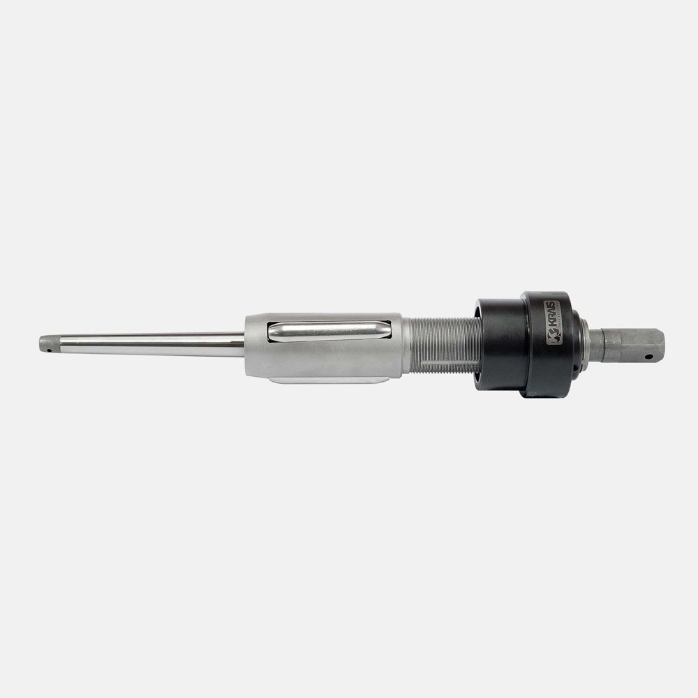 Three rolls, Self-feeding adjustable reach tube expander for deep reach expansion. Parallel rolling with long effective double radius rolls. Rolls are self-retained in the cage. An excellent expander for use as a touch-up expansion as well as a hard rolling and re-rolling a leaky tube and for new constructions of Water Tube Boilers, Fire-Tube Boilers, Economizers, Air Heaters. Expanders with 4, 5 rolls, with long rolls or longer reach with 2-inch increments are available on request.